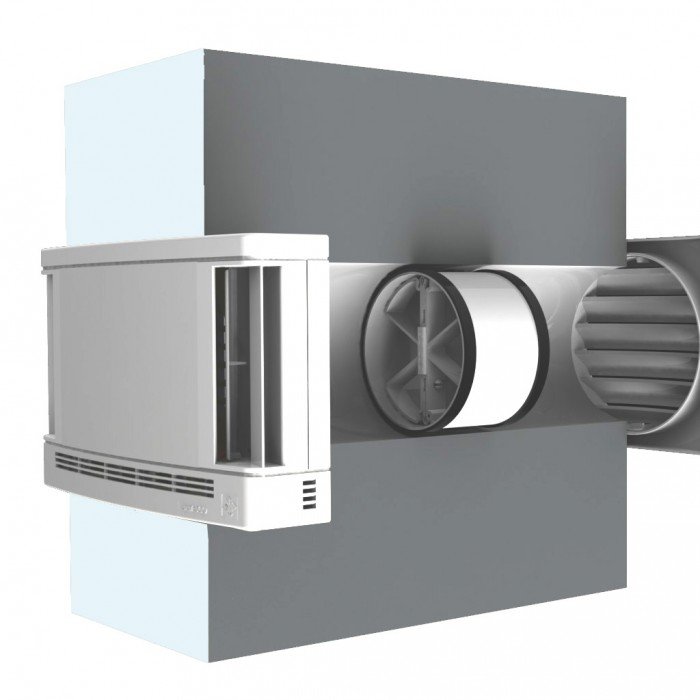 • Jednoduchá instalace přes stěnu (délka potrubí např. 350 nebo 500 mm, Ø100 mm)