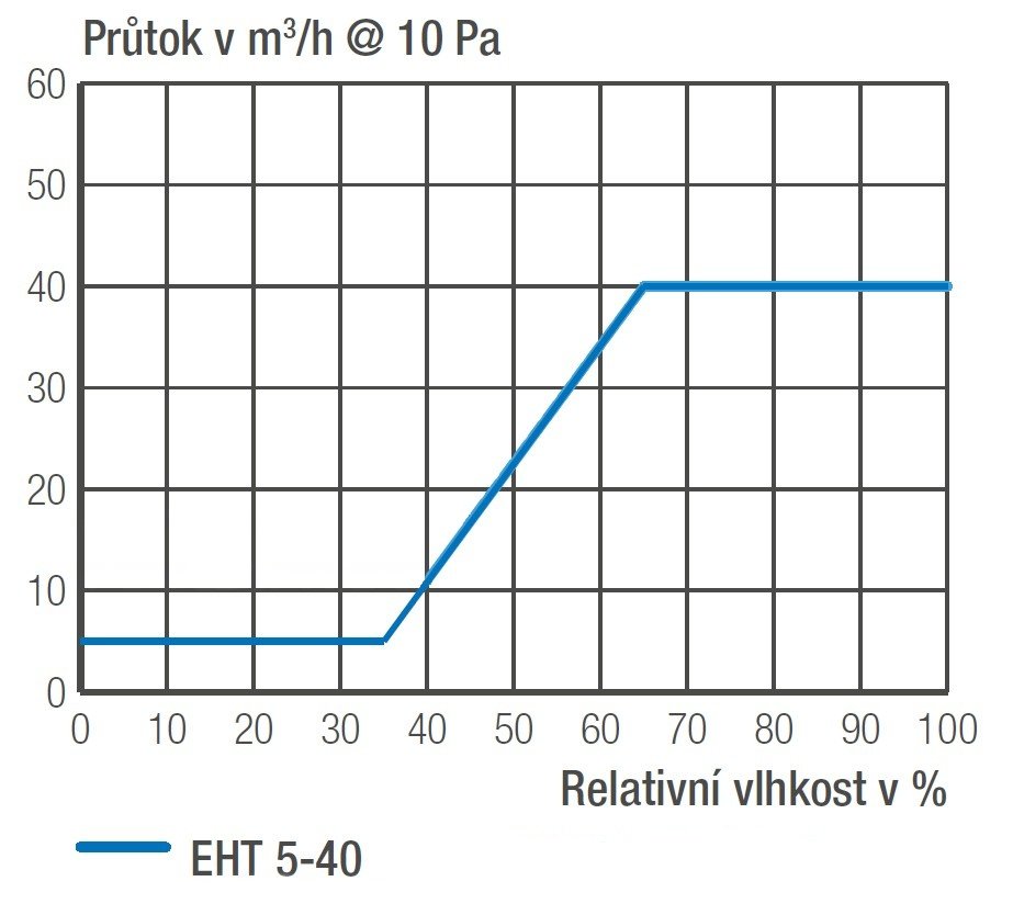 (5 m3/h při 35% vlhkosti - max. 40 m3/h pří 65% vlhkosti)