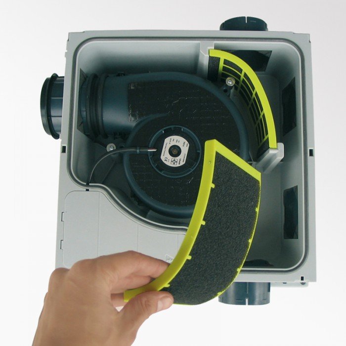 EKM motor (Elektronický Komutační Motor) ventilátoru V2A je řízen elektronickou kartou, která řídí jeho rychlost. Rychlost motoru společně se speciálním kolečkem umožňuje udržovat konstantní tlak 80 Pa, toto umožňuje proporční průtok vzduchu k měnícímu se průřezu odsávacích mřížek reagujících na relativní vlhkost. Proto je spotřeba elektrické energie a hlučnost minimální.