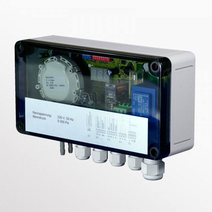 Vestavěný regulátor tlaku umožňuje určit tlak. Tlak měřený na vestavěném tlakoměru je zobrazen na digitálním displeji. Tlak je automaticky regulován pro optimalizaci systému při použití odsávacích mřížek pro nucené větrání. K dispozici je výstup 0-10 V pro monitorování sytému.